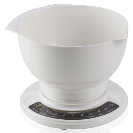 Kennen Sie den ? Die analoge Küchenwaage ist eine der meistverkauften analogen Küchenwaagen weltweit und ein echter Dauerbrenner auf dem Markt. Die praktische große Rührschüssel mit Griff und Ausgießer fasst 2,5 Liter und ist immer ein treuer Begleiter. 5 kg Tragkraft und 50-g-genaue Teilung sind optimal für den täglichen Gebrauch. Supereinfach in der Handhabung mit mechanischer Zuwiegefunktion ist sie robust und leicht zu reinigen durch pflegleichten weißen Kunststoff. Solch eine Erfolgsstory hat echten Applaus verdient!