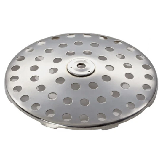 Babynahrung und anderen Lebensmittel mit ihr bearbeitet werden. Sie ist aus Edelstahl gefertigt, mit zwei Griffen versehen und in allen Topfgrößen bis 28 cm Höhe einsetzbar. Ebenso verfügt sie über 3 auswechselbare Lochscheiben.