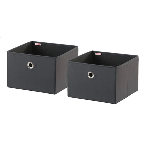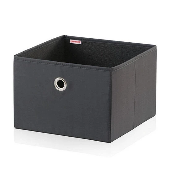 Die Leifheit Box groß in schicker schwarzer Optik ist ideal, um Socken, Unterwäsche oder Accessoires sauber und übersichtlich sortiert aufzubewahren. Schön stabil wird die Box durch die verstärkten Seidenwände und den festen Boden. So lässt sie sich – unterstützt von der Metallöse auf der Vorderseite – auch gefüllt angenehm leicht aus den Regalen ziehen. Damit der Inhalt sauber und hygienisch bleibt, besteht die Box aus einem mehrlagigen, engmaschig gewebten Stoff, der abwaschbar und atmungsaktiv ist. Verwenden lässt sich die Box in jedem Kleiderschrank und in jeder Kommode. Außerdem ist sie kompatibel mit den Leifheit Combi System Produkten. Sie passt zentimetergenau in den Leifheit Schuhschrank und das Leifheit Hängeregal, das wiederum im Kleiderschrank seinen Platz findet, denn das gesamte Leifheit Combi System ist kombinierbar und kann modular ergänzt werden. So können Sie Ihre Ordnungssysteme exakt aufeinander abstimmen. Wird die Box nicht , ist sie mit wenigen Handgriffen zusammengefaltet und platzsparend verstaut. Maße 28 x 28 x 19 cm.