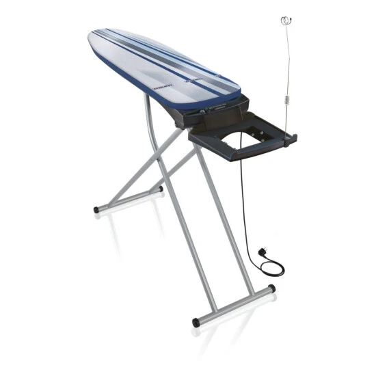 Der Leifheit Aktiv-Bügeltisch Air Active Express M ist ausgestattet mit einer praktischen Kombi-Ablage mit einer Stellfläche von bis zu 31 x 28 cm. Sie bietet genügend Platz für Dampf-Bügelstationen und auch Dampf-Bügeleisen können in der Mulde sicher abgestellt werden. Ausgestattet ist der Bügeltisch mit einer NF Steckdose samt Anschlusskabel, an der das Bügeleisen oder die Dampfstation direkt angeschlossen werden können. Die Bügelfläche misst 118 x 38 cm und ist perfekt geeignet für noch einfacheres und leichtgängigeres Bügeln von großen und breiten Wäschestücken. Sie besteht aus hochwertigem, ultraleichtem Spezialkunststoff (EPP), wodurch der Bügeltisch mühelos transportiert werden kann.