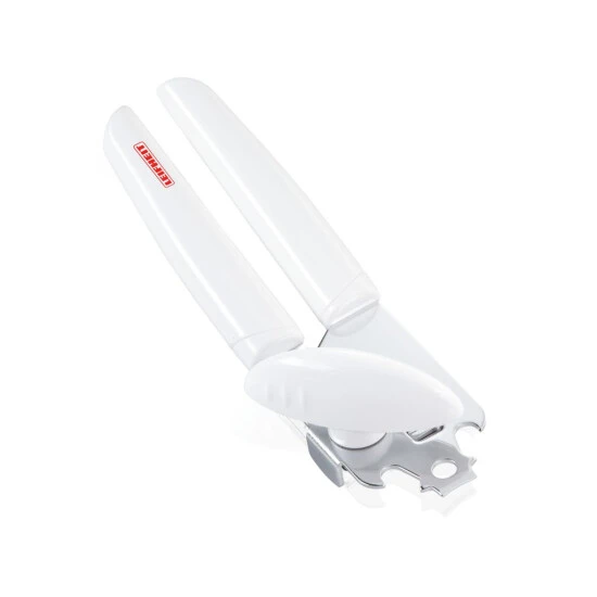 Ohne Kraftaufwand öffnet der Leifheit ComfortLine Dosenöffner Exact jede handelsübliche Dose. Sein gehärtetes Schneidrad dringt leicht ins Metall ein und lässt sich mühelos drehen. Die ergonomisch geformten Griffe liegen angenehm in der Hand, der weiße Kunststoff ist sauber und hygienisch. Mit integriertem Kapselheber.