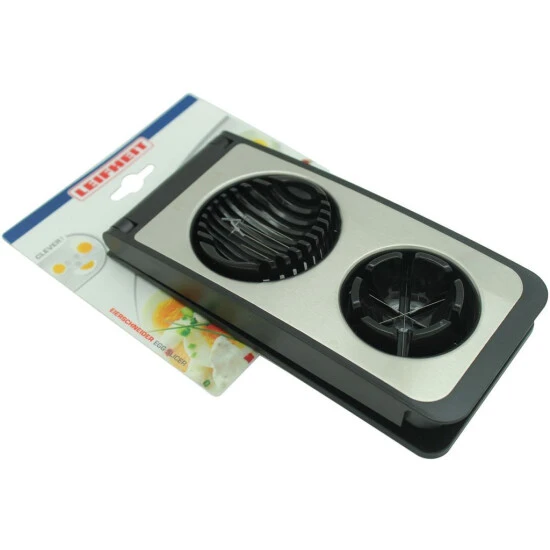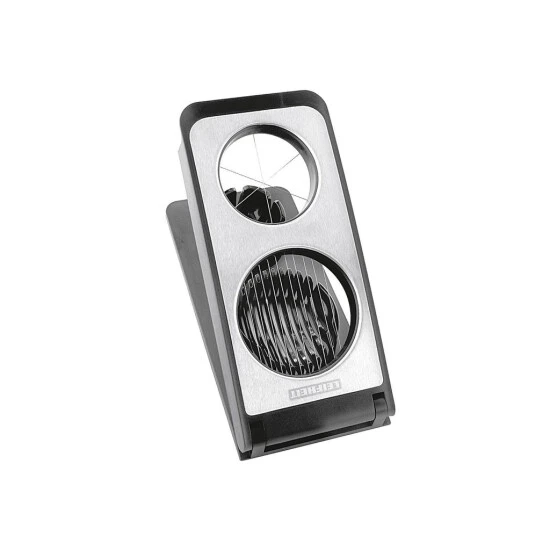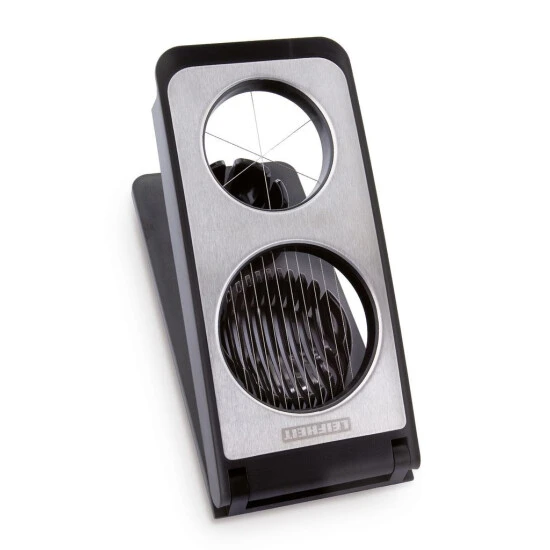 3 Funktionen in nur einem Gerät: der Leifheit ProLine Eierschneider Combi schneidet und spaltet Eier, Champignons, Kiwis, Mozzarella oder Pellkartoffeln blitzschnell. Die rostfreien, stabilen Schneidedrähte aus Edelstahl sorgen für eine saubere Trennung der eingelegten Lebensmittel. Für die Dekoration von Buffets und kalte Platten werden Eier, Käse und gekochtes Gemüse mit dem Combi Eierschneider mühelos in gleichmäßige Scheiben und Spalten geschnitten.