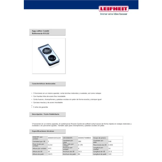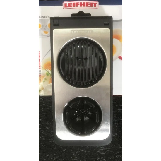 LEIFHEIT Eierschneider Combi Material: Edelstahl und Kunststoff Farbe: silberfarben Der Eierschneider ist ein 3in1-Modell Er teilt eier in Ovale, und Scheiben Es können auch Pilze oder Pellkartoffeln zerteilt werden Der Schneidedraht besteht ebenfalls aus rostfreiem Edelstahl