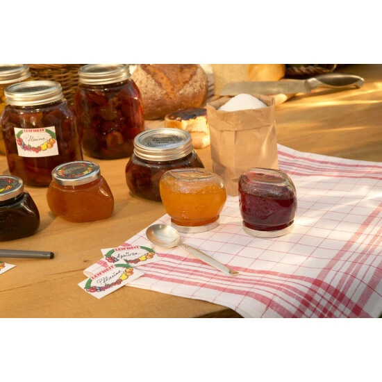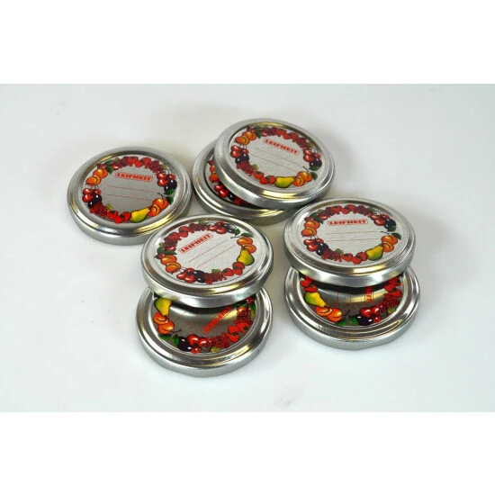 Die Ersatzdeckel für die Leifheit Confiture-Gläser, Sturzgläser 167 ml und passend für alle Gläser mit 66 mm großer Öffnung. Mit individueller Beschriftungsmöglichkeit und mit Spezialbeschichtung. Inhalt: 10 Stück.