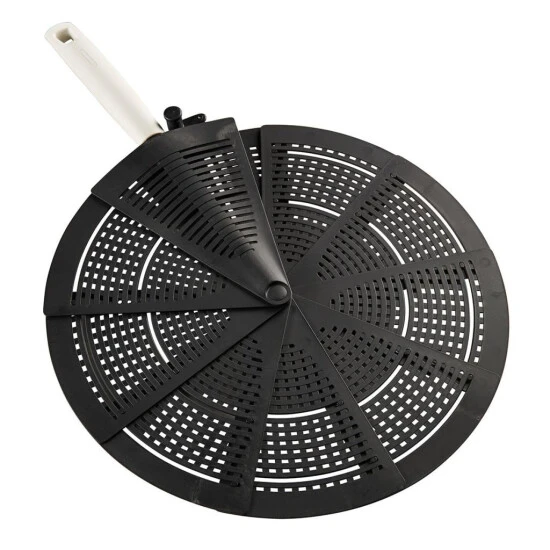 Der Leifheit Spritzschutz aus handlichem, angenehm leichtem Kunststoff ist wie ein Fächer auffaltbar.