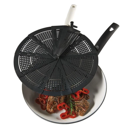 Der erste Pfannen-Spritzschutz, der sich auf die Größe eines Tortenhebers verkleinern lässt.