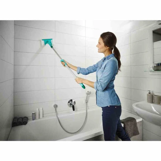 - mit Abziehlippe, Teleskopstiel und runder Aussparung für Armaturen