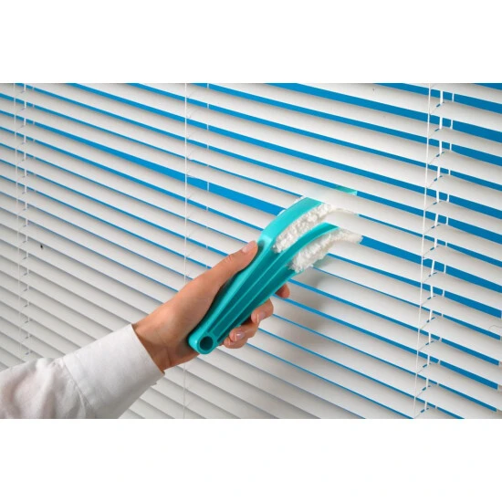 Jalousien zu reinigen ist die reinste Sisyphusarbeit. Gerade, wenn die Lamellen oft in der Waagrechten stehen, sind sie wahre Staubfänger. Und unangenehme Allergiequellen. Es sei denn, der Handstaubwischer Jalousetta von Leifheit ist im Einsatz. Dank seiner speziellen Form umfasst er zwei Lamellen gleichzeitig und reinigt damit vier Flächen mit nur einem Wisch. Der Mikrofaserbezug zieht den Staub regelrecht an und hält ihn in seinen feinen Fasern fest. So wird verhindert, dass Staubpartikel nur aufgewirbelt werden und an anderer Stelle wieder zu Boden sinken. Auch hartnäckigen Schmutz wie Fettablagerungen lösen die feinen Fasern mühelos ab – ohne dabei die empfindlichen Oberflächen zu zerkratzen. Zum praktischen Verstauen ist Jalousetta mit einer Aufhängemöglichkeit ausgestattet.
