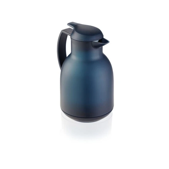 So macht die Kaffeepause noch mehr Spaß: die hochwertige Isolierkanne Bolero überzeugt mit ihrem schicken Design in gefrosteter Optik. In der gedeckten Stylefarbe satin-darkblue verleiht sie dem Kaffee- und Teegenuss einen besonderen Akzent – ob im Büro oder zu Hause. Ein doppelwandiger Vakuum-Glaskolben hält den Inhalt über viele Stunden heiß oder kalt. Die original Aromataste ermöglicht das Öffnen, Gießen und Schließen mit nur einer Hand und bewahrt das volle Aroma des Kaffees oder Tees. Erhältlich ist die Isolierkanne in vielen Farben. Der Inhalt von 1 Liter reicht für ca. 8 Tassen.