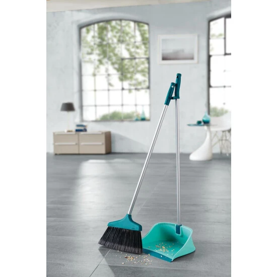 Kehren ohne Bücken. Das Leifheit Kehrset Classic mit Stiel und offener Schaufel ist das perfekte Duo, um die Kehrarbeit zu erleichtern. Besen und Kehrschaufel besitzen einen langen Stiel, so dass sich die Kehrarbeit komplett im Stehen erledigen lässt. Für besonders gründliche Sauberkeit sorgen die gesplissenen Borstenenden. Sie vergrößern die Kehrfläche und nehmen auch feinste Schmutz- und Staubpartikel mit. Hinzu kommt die asymmetrische Form des Besens. Sie ist der Kehrhaltung angepasst, so dass alle Borsten auch bei schräg gehaltenem Stiel vollständig aufliegen. Als weiteres Plus ist die Schaufel mit einer extra langen Gummilippe ausgestattet, die das Aufkehren auf unebenen Böden erleichtert. Zum platzsparenden Aufbewahren wird der Besen am Schaufelstiel befestigt und die Schaufel einfach eingeklappt. Mit Schaberkante zum Reinigen des Besens.