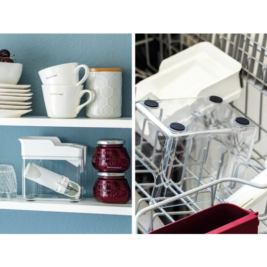 - Einfach zu verstauen wie eine Schüssel: einfach Griff demontieren und in der Auffangschale aufbewahren