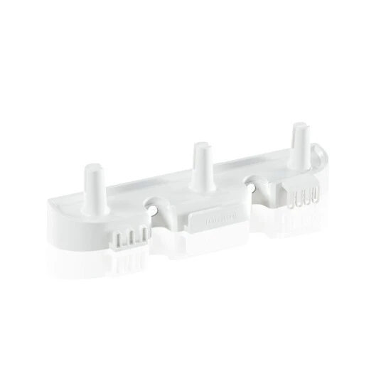 Dieser praktische Helfer sorgt für Ordnung: Mit dem Ordnungscenter Click System von Leifheit lassen sich alle Reinigungsutensilien platzsparend und jederzeit griffbereit verstauen. Drei Funktionsteilehalter dienen zum einfachen Aufstecken von Reinigungsköpfen mit Click System oder aber auch als Steckplatz für Wischpads. Zudem lassen sich bis zu zwei Leifheit Stiele in den Stielhalterungen einhängen. Besonders praktisch: Die Funktionsteile müssen dafür nicht abgenommen werden. Aber auch Wischbezüge mit Laschen wie die Profi XL oder Classic XL Bezüge finden an dem Ordnungscenter ihren Platz. Des Weiteren lassen sich bis zu drei Tücher, Wischpads, Mopp-Köpfe oder Wischbezüge problemlos an dem integrierten Kleinteilehalter befestigen. Weiterhin bietet das Ordnungscenter Click System drei Haken für das bequeme Aufhängen von Tüchern oder anderen Produkten mit Kordel-Aufhänger. Ein Montageset für eine sichere Anbringung des Ordnungscenters an der Wand ist im Lieferumfang enthalten.