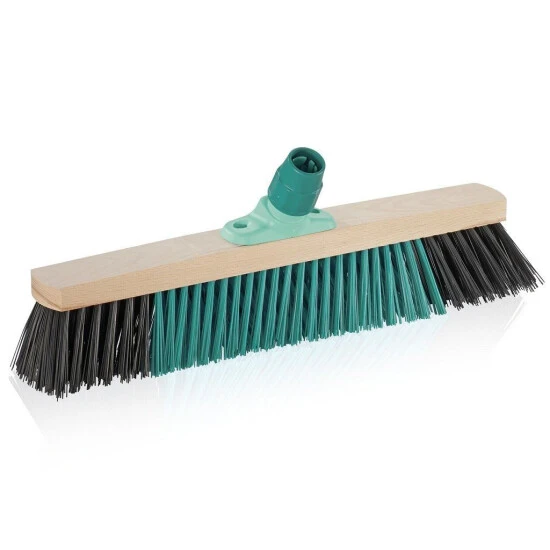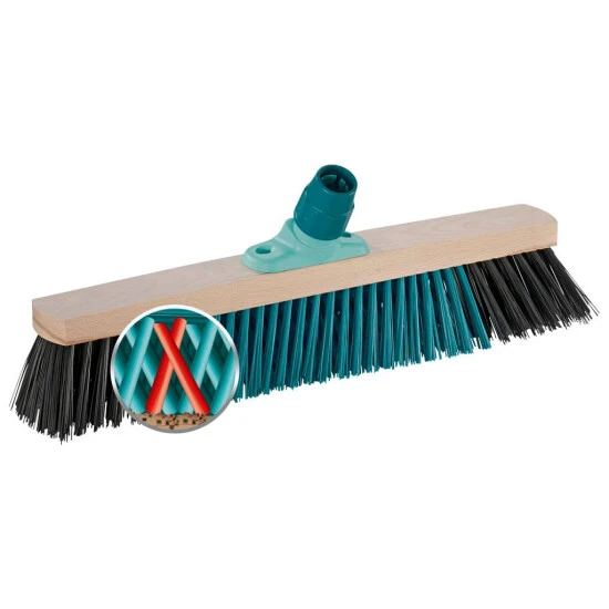 Innovative X-Borsten für schnelleres, gründlicheres Fegen. Schräge Gewinde-Stielanbindung für vollflächiges Kehren. Ein Holzstiel lässt sich per Gewindeverbindung sicher und stabil fixieren.