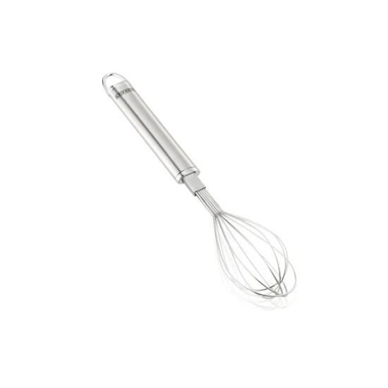 Ein schlankes, elegantes Design, kombiniert mit hochwertigem Edelstahl: Die Küchenhelfer der Leifheit Sterling-Serie erinnern mit ihren matten und glänzenden Elementen an die Beständigkeit und die Brillianz von zeitlosem Silber. Sie überzeugen in ihrer Handhabung: Der oval geformte Griff des Sterling Schneebesens liegt gut und sicher in der Hand. Der hochwertige Edelstahl gibt eine angenehme Stabilität. Mit praktischer Aufhängeöse für die separat erhältliche Sterling-Hakenleiste.