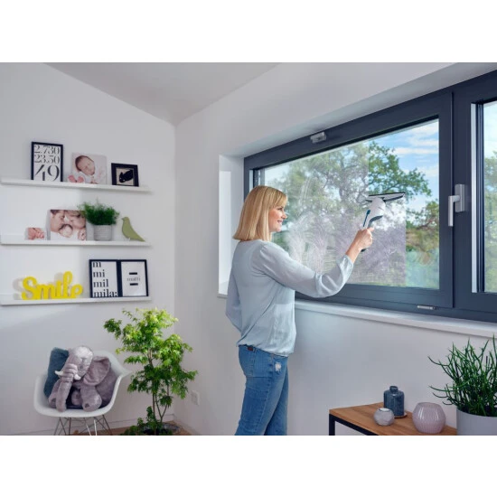 Der Fenster- und Badsauger Nemo von Leifheit ist perfekt für alle, die ihre Fenster, Spiegel, Fliesen und Co. möglichst unkompliziert und schnell reinigen möchten. Dank seiner automatischen Saugfunktion sind glatte Flächen im Nu wieder strahlend sauber – ohne Streifen und ohne heruntertropfendes Wasser. Durch seine schmale Form ist er nicht nur besonders handlich: Der Tank ist platzsparend in den Griff integriert, wodurch das Absaugen in einem Zug möglich ist, ohne an der Fensterbank anzustoßen. Lästiges Nachwischen entfällt, da er bis zum unteren Fensterrand gelangt. Auch im Bad ist der praktische Sauger ein wahres Multitalent: Spiegel, Fliesen oder Duschkabinen werden dank der im Set enthaltenen Bad-Düse mühelos und hygienisch sauber. Ihre weiße Abziehlippe ist selbst bei unebenen Fliesen besonders anpassungsfähig. Dank einzigartigem IPX7-Wasserschutz kann der Sauger sogar bedenkenlos und griffbereit in der Dusche gelagert werden. Nach der Reinigung lässt sich der Tank über eine Öffnung am Griff schnell und unkompliziert wieder entleeren. Mit seinem leistungsstarken Akku kann der Sauger bis zu 45 Minuten und damit 130 m² Fläche mit einer Akkuladung absaugen. Selbstverständlich ist die Gummilippe des Gerätes austauschbar. So kann jederzeit ein optimales Putzergebnis erzielt werden.
