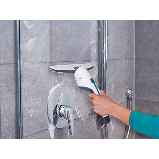-Inklusive spezieller Bad-Düse mit weißer Abziehlippe zur hygienischen Reinigung von Spiegel, Fliesen oder Duschkabinen