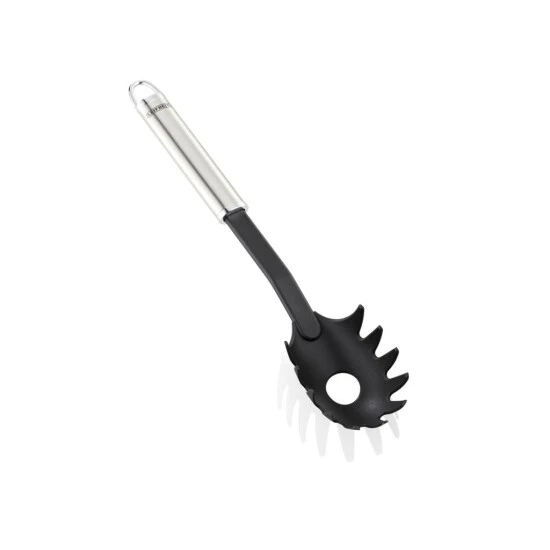 Ein schlankes, elegantes Design, kombiniert mit hochwertigem Edelstahl: Die matt schimmernden Griffe der Leifheit Sterling-Küchenhelfer erinnern an die Beständigkeit und die Brillianz von zeitlosem Silber. Sie eignen sich perfekt für das Servieren am Tisch und überzeugen in ihrer Handhabung: Der Laffe aus hitzebeständigem Nylon (bis 160°C) schont die empfindliche Oberfläche beschichteter Pfannen und Töpfe. Der oval geformte Griff des Sterling Spaghettilöffels liegt gut und sicher in der Hand. Und der hochwertige Edelstahl gibt eine angenehme Stabilität. Mit praktischer Aufhängeöse für die separat erhältliche Sterling-Hakenleiste.