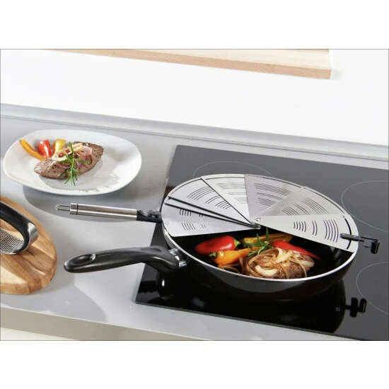 - erster Spritzschutz, der sich auf die Größe eines Tortenhebers zusammenfalten lässt