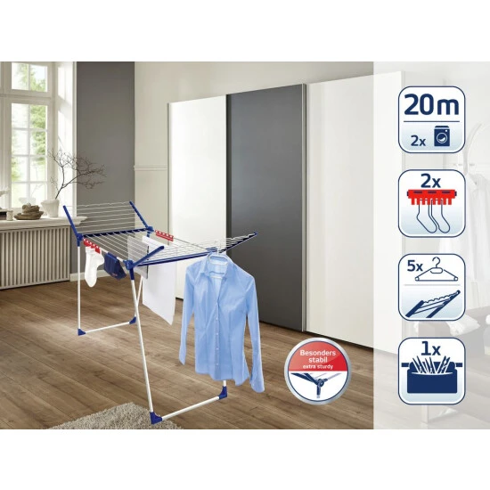 - Mit Flügeln zum Trocknen langer Wäschestücke