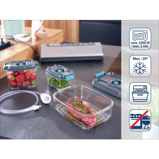 - Vakuum-Frischhaltedosen Set 500ml, 800ml, 1400ml & Vakuumierschlauch mit Adapter für elektrische Vakuumier-Geräte