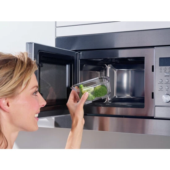 - Mikrowellengeeignet zum Auftauen und Erwärmen des Inhalts (maximal eine Minute bei 1000 Watt, ohne Deckel)