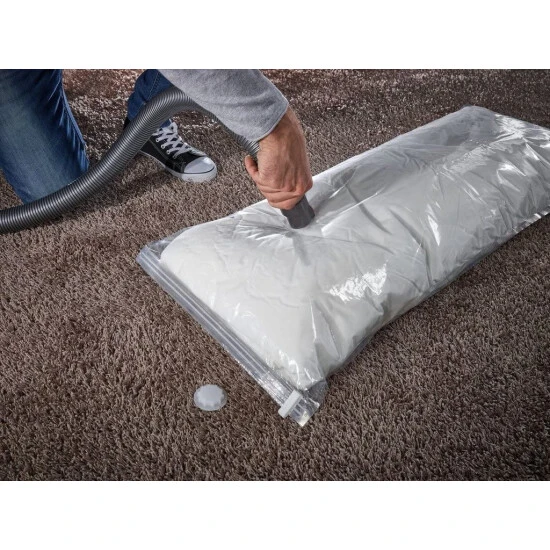 Bettwäsche oder Kleidung einfach in die Vakuumbeutel legen, verschließen und mit einem Staubsauger die Luft absaugen.