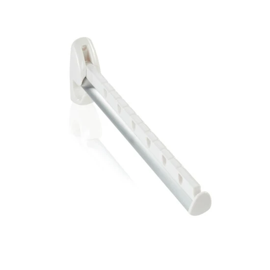 Der platzsparende Leifheit Wandkleiderhalter Airette bietet mit seiner Länge von 31 cm Platz für 7 Kleiderbügel. Nach dem Gebrauch lässt er sich ganz einfach hochklappen und liegt platzsparend an der Wand an. Geeignet ist er sowohl für den Innenbereich, als auch für den Aussenbereich, da er aus einem wetterfesten stabilen Kunststoff mit einem hochwertigen Aluminium Rohr besteht. Leicht anzubringen, Dübel und Schrauben liegen bei.