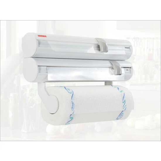 - Halterung fur eine Küchentuchrolle sowie zwei geschlossene Behälter für Alu- und Frischhaltefolien