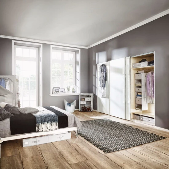 - Gelungenes Design für Bad und Schlafzimmer in schöner grauer Stoffoptik