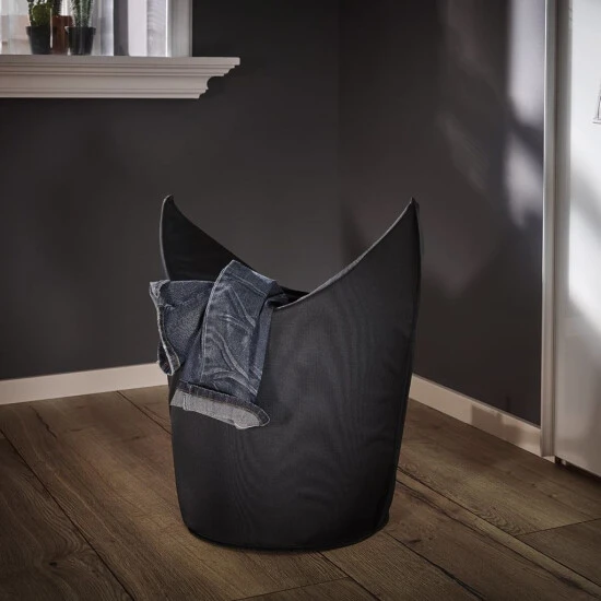 Der Leifheit Wäschesammler ist ein praktischer Haushaltshelfer, der mit seinem gelungenen Design und der schlichten schwarzen Stoffoptik hervorragend ins Bad und ins Schlafzimmer passt. Ein Handgriff genügt, und die großzügige Öffnung des Leifheit Wäschesammlers verwandelt sich in zwei praktische Tragegriffe. So lässt sich die Wäsche bequem zur Waschmaschine transportieren. Werden die Griffe wieder zugeklappt, versperren sie den Blick auf die Schmutzwäsche. Stabilität gibt der verstärkte, engmaschig gewebte Stoff gemeinsam mit dem runden, standfesten Boden. So bleibt der Wäschesammler trotz seines Stoffdesigns auch leer sicher stehen und behält seine schöne Form. Damit auch nach langem Gebrauch alles hygienisch sauber bleibt, ist das Material geruchsneutral und abwaschbar. Ist der Wäschekorb geschlossen, nimmt er bis zu 50 Liter Schmutzwäsche auf, geöffnet passen ca. 60 Liter hinein.