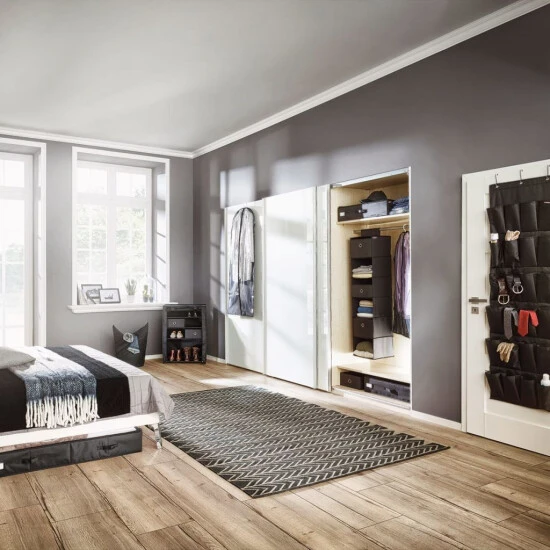 - Gelungenes Design für Bad und Schlafzimmer in schöner grauer Stoffoptik