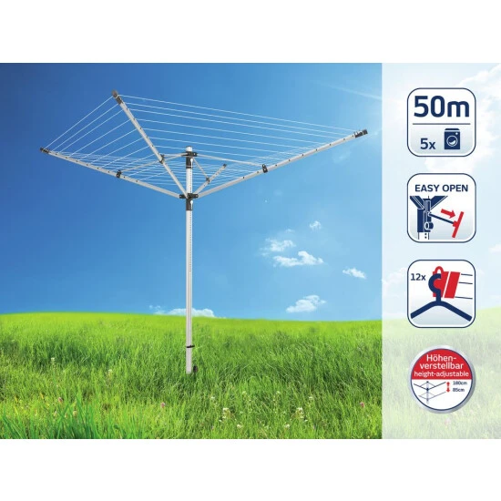 - 50 Meter Leinenlänge, die Platz bieten für bis 5 Waschmaschinenfüllungen