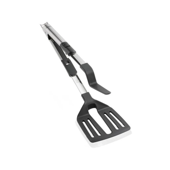-bietet zwei Funktionen in einem Gerät: verwandelt sich in Sekundenschnelle vom Pfannenwender zur Zange